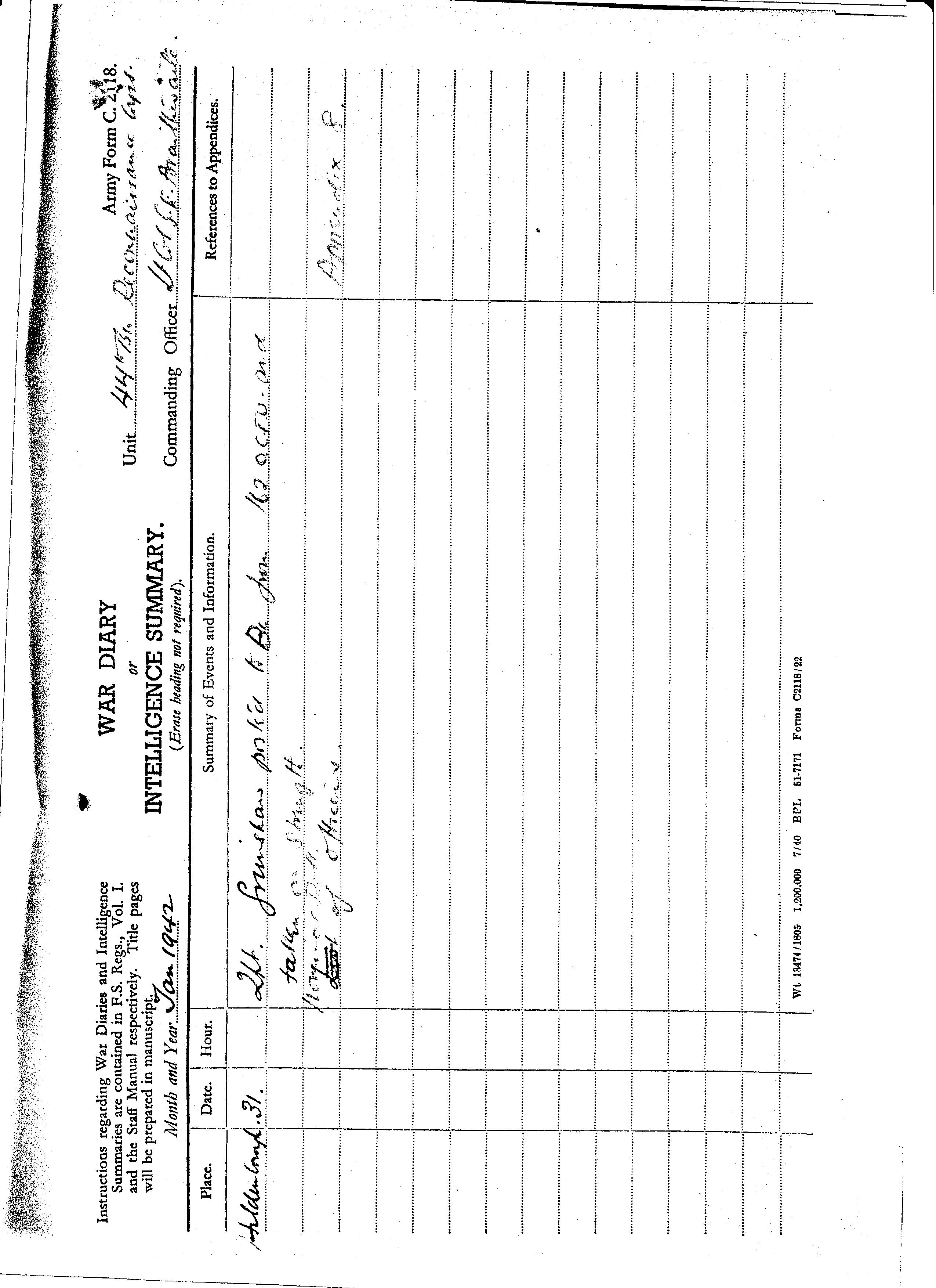 | 1942 011 | Appendix 7 - H.Q. Movement Exercise (16th Jan) | |
