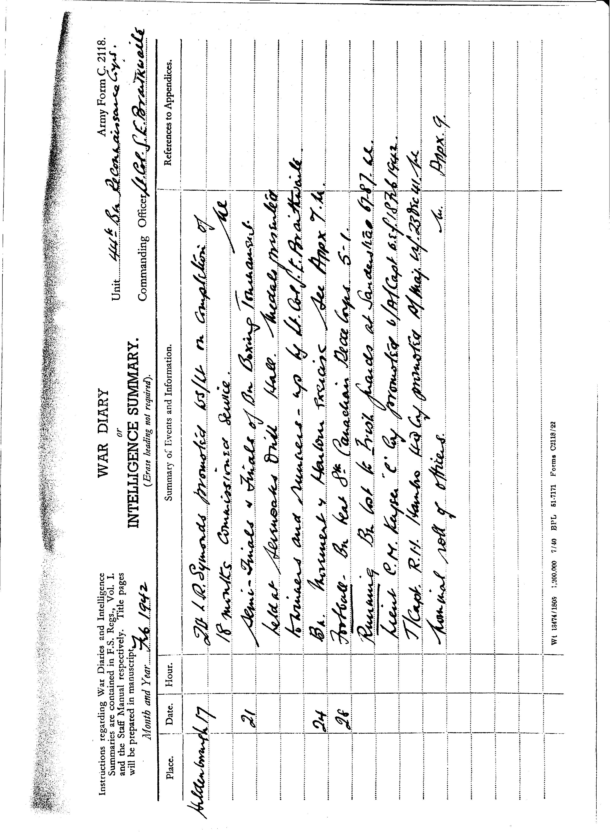 | 1942 010 | Appendix 8 - Roll of Officers (26th December 1941) | |