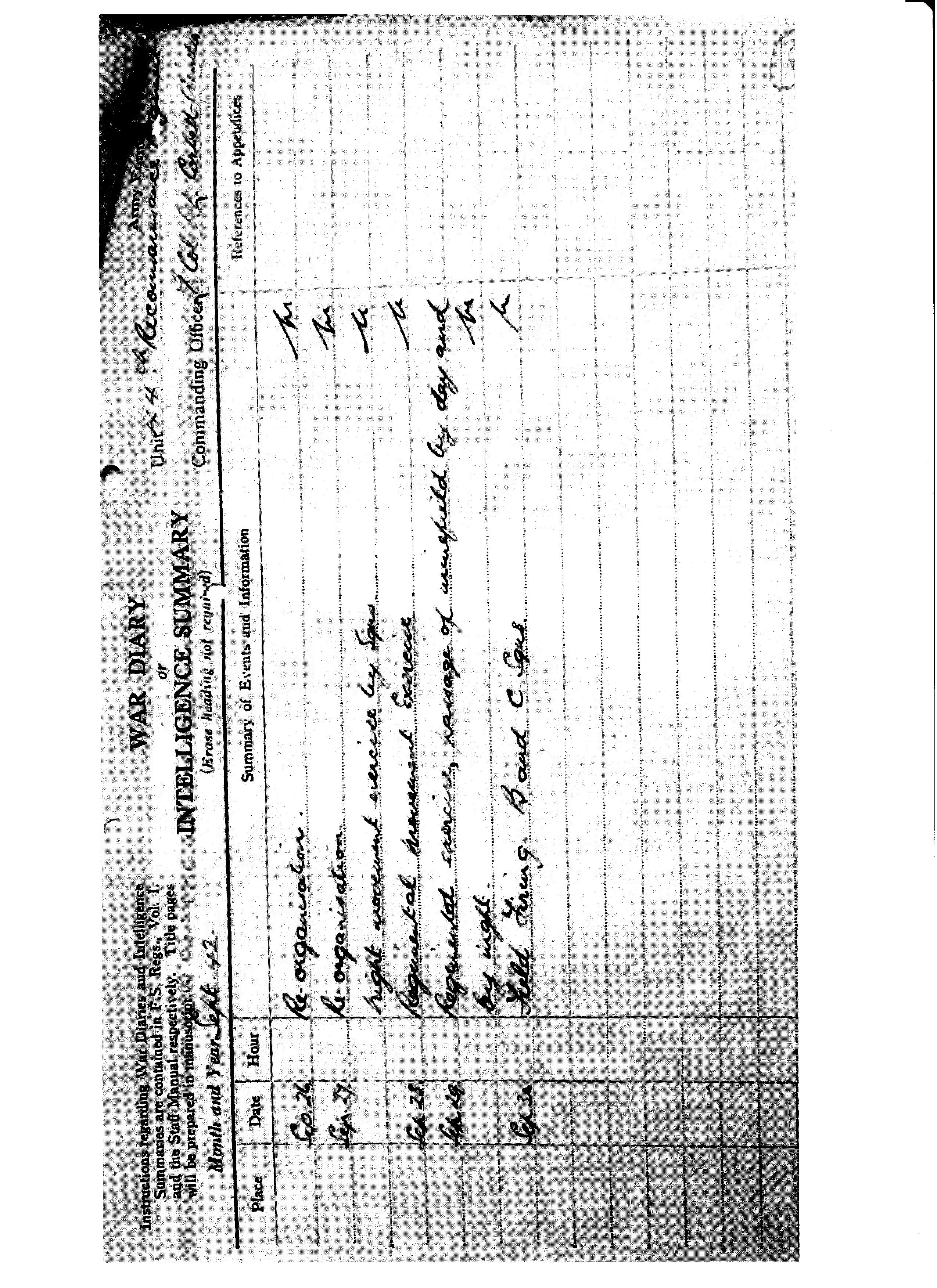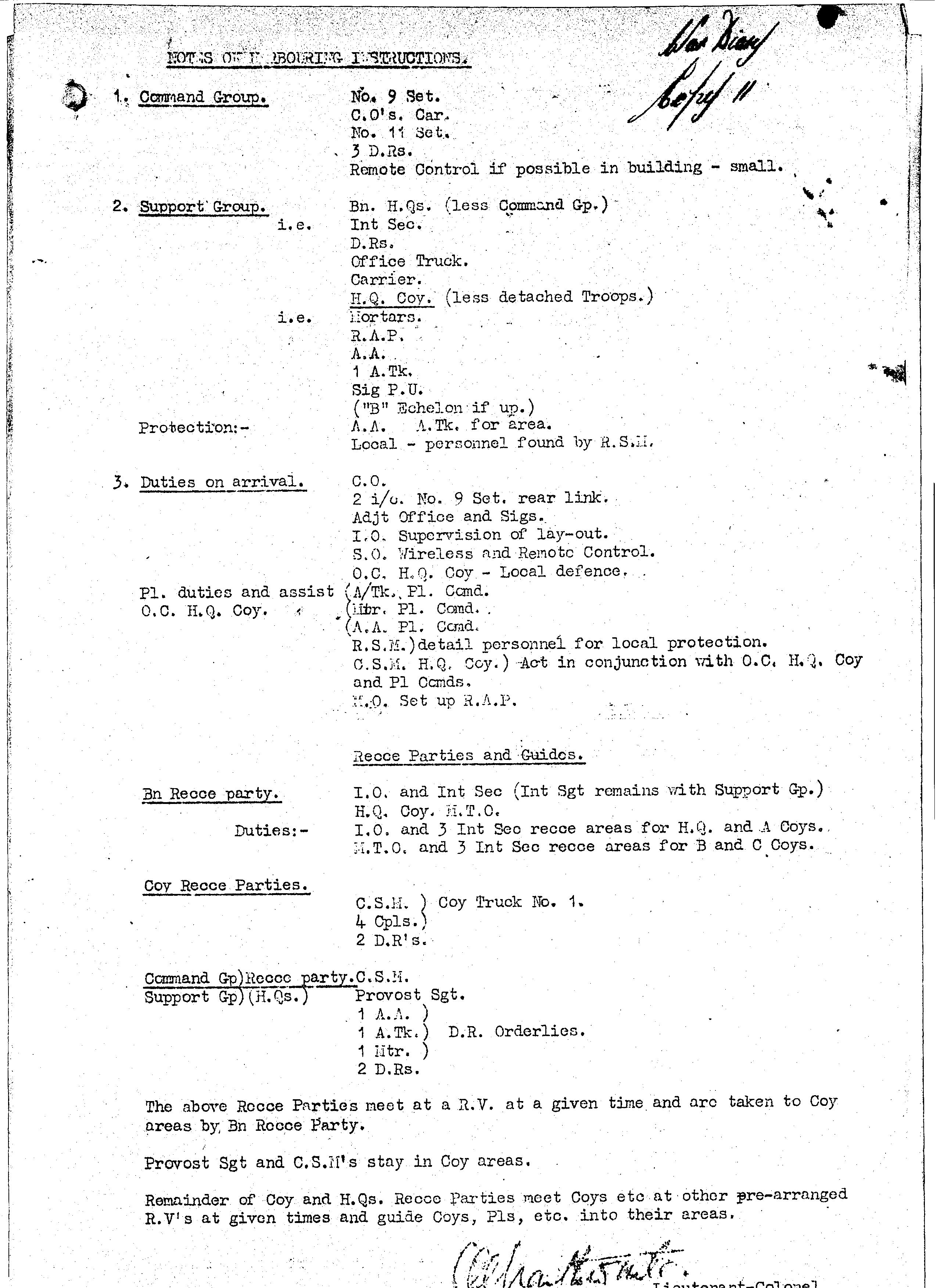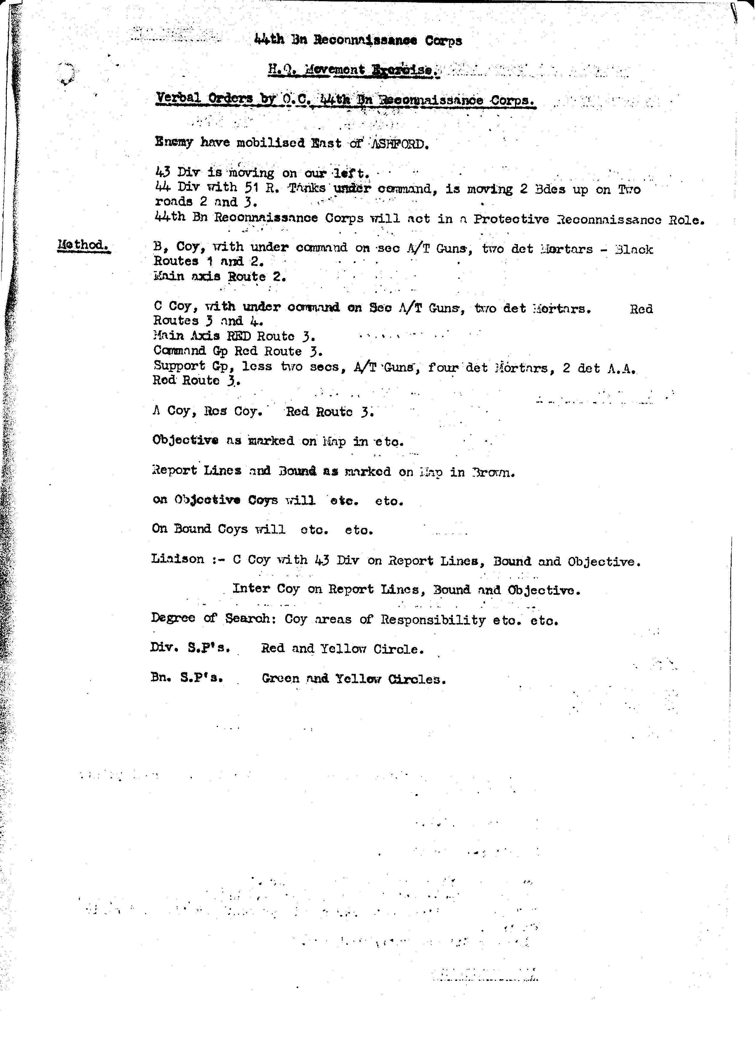 | 1942 012 | H.Q. Movement Exercise - Verbal Orders by O.C. | |
