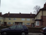 The end of Marlborough Road, leading to Winchester Road, can be seen in the earlier photo and this has a two bedroom variant of the housing. This has a single picture window for the master bedroom, no upstairs bay, and a plain roof line. The back also doesn't have the double storey bay the larger houses have. These smaller houses are also featured in Stowe Gardens which is the cul-de-sac shown in the photo on the right with the rear of houses in Winchester Road in the background. Just past Stowe Gardens the road bends to the left to head off in a north-westerly direction.