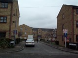 On the west side things change after the junction with Lancing Gardens where a terrace of Latymer Estate style housing escapes onto the road and beyond that there are some much largers houses running across Harrow Drive into Bury Street (photos right).