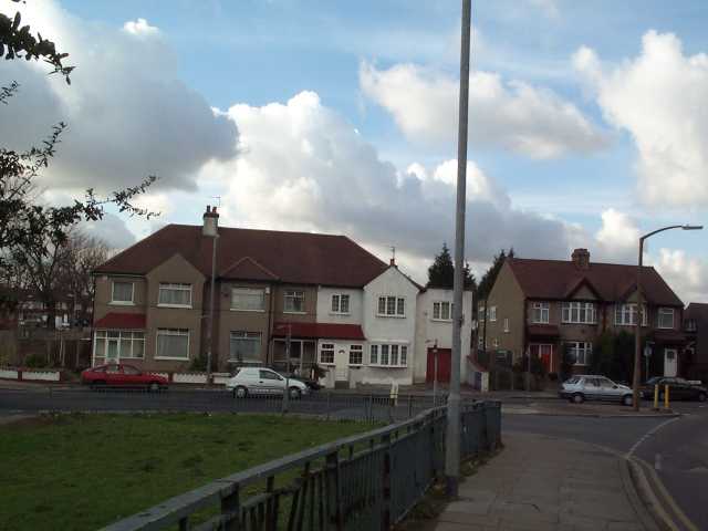 My memory of the houses running up to the junction with St Joan's Road (which crosses the road) was that they are semi-detached properties with two storey curved bay windows but the photo on the left above shows that they aren't :) Oopsy! The frontage of the houses on the west side of St Joan's Road (right) does look like it might be similar but these have distinctive attic rooms and I don't think I've seen anything like that elsewhere in Lower Edmonton.