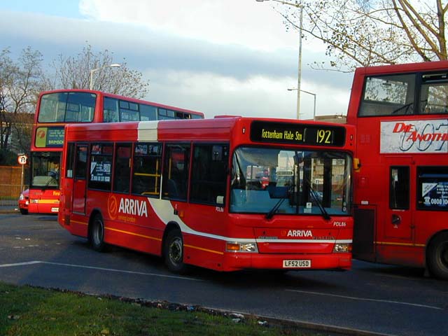 As of February 2003 the 149 and 279 were run by Arriva using a mix of type DLA and DLP buses and the odd Metrobus and I speculated that the older buses will disappear as the newer ones become available. As of August 2003 it seemed this speculation was valid. The 149 actually had DLA only and the 279 both types (the occasional Metrobus was probably just a fleet spare). The 259 was being run by First using the type TN but I read that at the end of March 2003 it would be switched to type VTL. I hadn't been paying too close attention but my feeling is that if this did happen then it was a gradual change. However come mid-June every 259 I saw was a VTL.