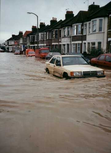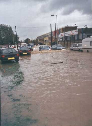 Flooding is not a new problem to Edmonton though I cannot recall anything quite so severe for a very long time. Upper Edmonton had problems around the railway bridge by Silver Street station where the road dips down and where a lesser known channel of Salmon's Brook (now an overflow channel with the flow diverted downstream) met Pymmes Brook near Montagu Road there was flooding across and on both sides of the North Circular.