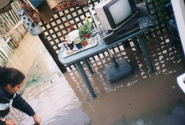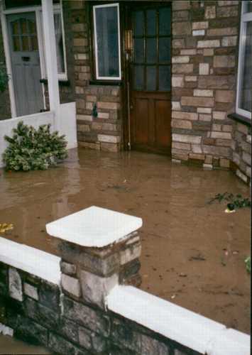 During October 2000 there was a spell of unusually heavy rain which led to Salmon's Brook running high and one night it overflowed its banks in the area approaching Montagu Road. With the brook running so high Saddlers Mill Stream was unable to fully discharge into it where they meet in a culvert under Montagu Road which resulted in added problems as surface drainage effectively went into reverse. This resulted in severe flooding in the area. This made the local press at the time though I didn't realise quite how bad it had been until Lesley Anderson of the Montagu Road Flood Action Group sent me a selection of photos, some of which I have reproduced here.
